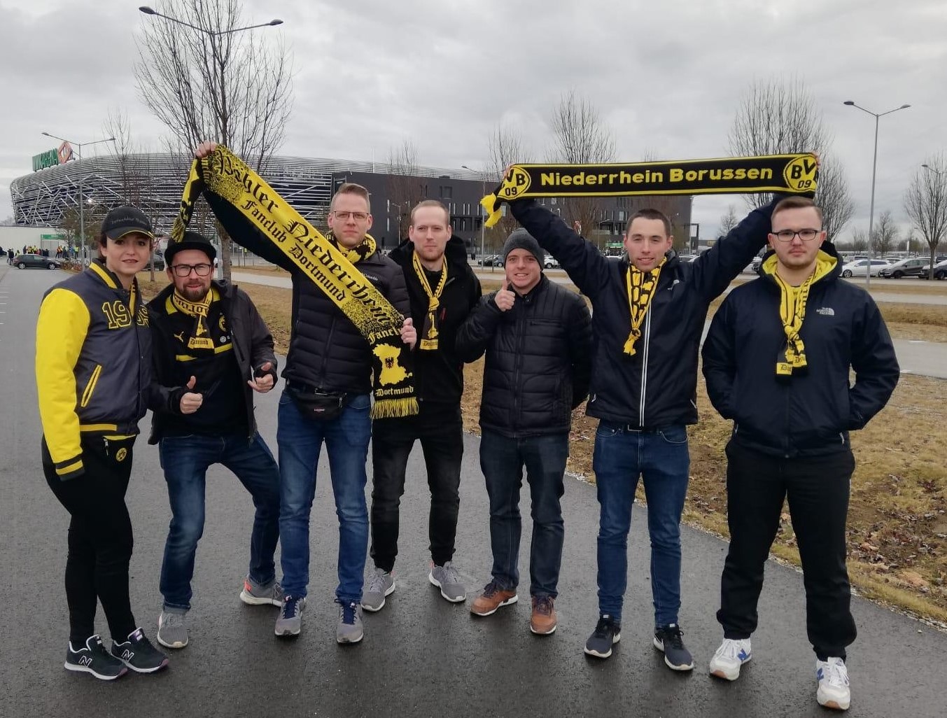 Unser BVB-Fanclub Niederrhein Borussen pflegte seine Beziehungen zu den befreundeten ,,Pöhler Niederrhein“ zum Start der Rückrunde der laufenden Saison 2019/20. Mit einem Kleinbus starteten insgesamt acht begeisternde Schwarz-Gelbe in den frühen Morgenstunden in Richtung Augsburg. Dort sollte ein gelungener Rückrundenauftakt gelingen. Für ein paar war die WWK-Arena ein neuer ,,Ground“. Rund zwei Stunden vor dem Anpfiff fuhr unser Bus auf den Schotterparkplatz unweit des Stadions.